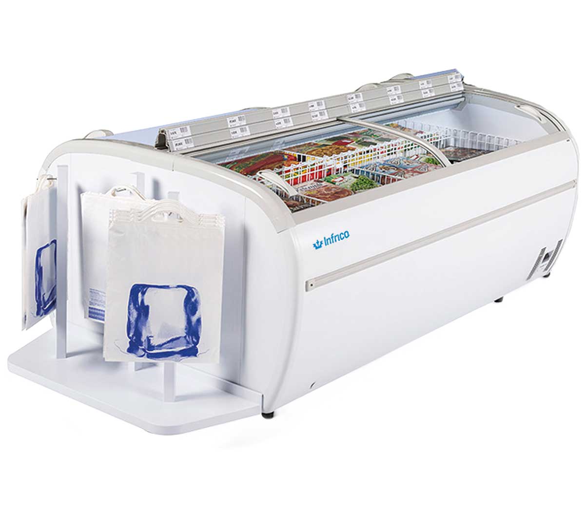\nLa Isla Congeladora Cabecera CHE de Infrico es ideal para su uso en supermercados. Está fabricada con exterior e interior en chapa galvanizada revestida en PVC de color blanco.